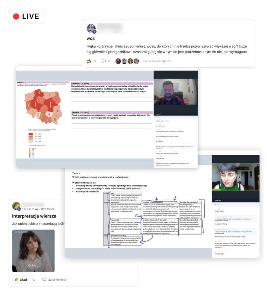 Te lekcje to nagrania z zajęć live z zeszłych lat, dostosowane i uzupełnione o odpowiednie informacje, zgodnie z wymaganiami matury 2026. Dodaliśmy do tego materiały PDF do pobrania, które pozwolą na szybkie odświeżenie sobie tematu tuż przed egzaminem.